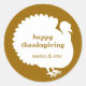 Verwandeln Sie Ihre Erntedank-Lebensmittel oder Backwaren in lustige Gastgeschenke mithilfe dieses Erntedank-Themas Gutes Aufkleber. Das Design zeichnet sich durch einen großen Truthahn vor einem braunen Hintergrund aus. Personalisieren Sie mit Ihrem Gruß und Namen. Anbringen Sie einfach Aufkleber an die Essensschachteln, verpackte Kekse, Papiertüten, Marmeladen oder Flaschen und freuen Sie sich am Ende der Nacht auf Ihre Gäste. Woll, Flair hinzuzufügen und deinen Esstisch so einfach zu dekorieren? Wählen Sie einen größeren Aufkleber aus und halten Sie die gerollten Servietten auf.