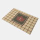 Braunes Kariertes Muster Fall Ahornleaf Monogramm Fußmatte