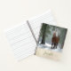 Spiralheft mit einem Foto eines braunen Pferdes mit einer langen weißen, scheußlichen Mane. Stehend in einem Wald mit Schneeflocken, die überall herumfallen.