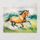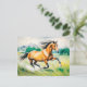 Braunes Pferd läuft über eine Wiese Postkarte