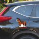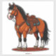 Ein glänzendes braunes Pferd steht im Profil, ausgestattet mit einem roten wattierten Satteldecke, einem Lederzaum und Reitgeschirr. Ideal für equestrische, Reit-, Stall- und Trainingsthemen in Stock-Sammlungen.