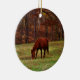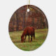 Braunes Pferd mit weißer Nase an der Holzkante Keramikornament