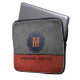 Braunes und schwarzes Leder. Custom Monogram Laptopschutzhülle