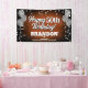 Ein lustiges Bannerzeichen für innen oder außen mit festlich silberfarbenen Metallballons auf beiden Seiten des Designs mit funkelnd, silbernen Metallkonfetti auf einem reich strukturierten schokoladenbraunen Hintergrund für Ihr personalisiertes Geburtstagsbanner. Dieses Produkt verdoppelt sich als wunderbarer Meilenstein-Geburtstagssicheres.