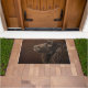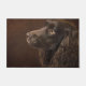 Das Design zeigt ein fotografisches Portrait eines Hundes mit braunem Haar auf dunkelbraunem Hintergrund.