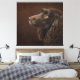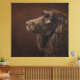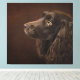 Das Design zeigt ein fotografisches Portrait eines Hundes mit braunem Haar auf dunkelbraunem Hintergrund.