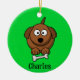 Braunhund mit Knochen, auf grün personalisiert Keramik Ornament