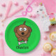 Braunhund mit Knochen, auf grün personalisiert Pappteller