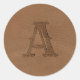Braunleder Textur Mit Monogramm erste Runder Aufkleber