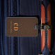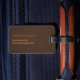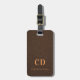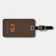Braune Imitate Lederprint als Hintergrund. Personalisieren Sie Ihre Monogrammbriefe und den vollständigen Namen auf der Vorderseite. Ihre Kontaktinformationen auf der Rückseite. Goldener Text.