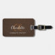Braune Imitate Lederprint als Hintergrund. Personalisieren und fügen Sie Ihren Vornamen, Monogramm Buchstaben und vollständigen Namen auf der Vorderseite. Ihre Kontaktinformationen auf der Rückseite. Goldener Text.