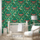 Braunmotten und Blumenmotiv - Grünes Tapete