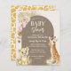 Baby Löwe und Baby Giraffe Safari Tiere gelb goldbraun boho getrocknete Blume Baby Dusche Budget Einladung Vorlage.
