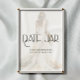 Stilvolles, elegantes Design mit Aquarellbraut in ihrem Hochzeitskleid, moderner Typografie und Springblumen im Hintergrund.Der Text kann leicht für ein einzigartiges Design für Ihren besonderen Tag personalisiert werden.