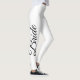 Braut-elegantes Skript-weiße schwarze Leggings sind eine große Spaßmodewahl, zum für Ihren Junggeselinnen-Abschied zu tragen! Kundengerechte weiße Farbhintergrund-Leggings mit "Braut" im schwarzen Skript auf rechtem Bein und über hinterem Hinterteilbereich der Leggings.