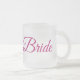 Feiern Sie die Braut mit diesem eleganten, mattierten Glasbecher, auf dem das Wort „Bride“ auf beiden Seiten aufgedruckt ist, wodurch er perfekt für Rechts- oder Linkshänder geeignet ist.