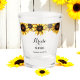 Bride gelbes weißes Shotglas mit Aquarellblumen, Hochzeitstext und Datum. Mehr Produkte mit diesem Design sind in der folgenden Kollektion zu finden.