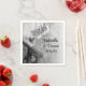 Passen Sie die lässige und dennoch klassische Braut in Cowboy Boots mit Sonnenblumen Country Wedding Paper Napkins mit den persönlichen Namen der Braut und Bräutigam und Datum für die Verwendung in Ihrem rustikalen schicken Brautparty oder Scheune Party Ehe Empfang. Diese informellen und eleganten Einweg-Servietten im Ranch-Stil sind mit einem malerischen Foto einer Cowgirl-Braut im Schwarz-Weiß-Stil mit einem Hochzeitskleid aus Spitzen und Leder-Western-Cowboystiefeln mit einem Blumenstrauß versehen.