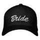 Bride schwarz-weiß benutzerdefinierte Skript elegante schicke Hochzeit bestickt Baseball Cap. Anpassbarer weißer Text, schwarzer Hintergrund. Erhältlich in vielen Farben und Stilvarianten.