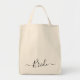 Moderne Kalligraphie Brautttaschen in schönen Schrift Typografie auf der Vorderseite gedruckt. Niedliche und einfache Taschen in einem schicken Kalligraphieskript. Eine tolle Bachelor-Party oder Hochzeitsgeschenk für die zukünftige Braut