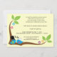 Dieses ZeitgenosseAusrüstungsbeschreibungen eine blaue Vogelbraut, die einen kurzen Schleier mit Perlen tragen und ein blauer Vogel pflegen komplettes mit Spitzenhut. Das Paar sitzt auf einer Baumniederlassung und ist durch bunte Blumen und Blätter gerahmt. Aller Text auf dieser wunderlichen Brautpartyeinladung ist zu Ihrer Partyinformation vollständig kundengerecht.