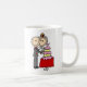 Niedliche Strichmännchenjungvermählten-Pose durch ihren enormen Hochzeitskuchen.