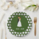 Braut und Keller mit Golfball auf grünen Hochzeitspapier-Tellern