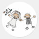Hochzeitskleber mit einer niedlichen Strichmännchen Braut und Bräutigam. Passen Sie Ihren eigenen Text an, wenn Sie möchten!