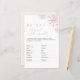Ein klassisches Wortverwirrungsspiel für die Brautparty mit einer romantischen Winterdrehung. Entworfen in sanftem Rosa mit Schneeflocken-Akzente, ist dieses Spiel perfekt, um Gäste bei einer Pink Snow in Love Brautparty zu unterhalten.