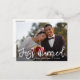 Lieblich romantisch gerade verheiratet, Hochzeitsankündigung mit weißem Pinselskript. Das Paarbild kann personalisiert sein.