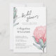 Die Brautdusche ist elegant und minimalistisch in Pastellfarben mit einer zarten Blume gestaltet.