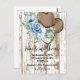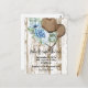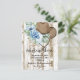 Brautduscheinkarte mit blauen Blumenmotiven und braunen Akzenten.