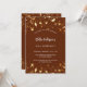 Brauner Hintergrund mit goldenen Sternen. Personalisieren und fügen Sie einen Namen und Party-Details hinzu. Der Name wird mit einem handgeschriebenen Stilskript geschrieben, mit weißen, farbigen Buchstaben.