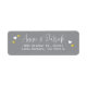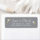 Adresse personalisiert in einer einfachen Art... graues Etikett mit zwei Textzeilen, die zentriert ausgerichtet sind, und Braut- und Bräutigam-Namen, die in einem stilvollen Skript-Schriftart-Stil mit dem Bild der kleinen Herzen der Liebe geschrieben sind.