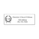 Mit einem Kranz dekoriert. Personalisieren Sie Ihren Namen, Ihre Adresse und fügen Sie diese hinzu. Fügen Sie die Initialen Ihrer Vornamen hinzu. Schwarzer Text.