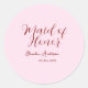 Brautjungfer lila name datum rosa pastel bräute runder aufkleber