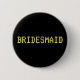 Las- Vegashochzeit, Brautjungfernknopf-Abzeichen. Fertigen Sie diesen Hochzeitsknopf besonders an, um Ihre Wortwahl zu zeigen. Ein Schwarz-, Gelber und nicht-metallischergoldfarbentwurf. Der Textplan und -farbton auf der Front wird durch die Lichter von Vegas inspiriert. Sein gerade könnte die Sache, wenn Sie in Las Vegas verheiratet erhalten und Sie nach kundenspezifischen Hochzeitsknopf-Abzeichen suchen.