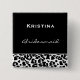 Dieses quadratische geformte Hochzeits-Party-Knopf-Button mit einer Schwarzweiss-Leopardordnung für Ihre Brautjungfer ist niedlich und trendy!  Fertigen Sie mit ihrem Namen besonders an!