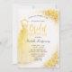 Elegantes gelbes Brautparty-Design mit einer raffinierten Brautjungfernkleid-Illustration und sanften floralen Akzenten. Ein heller und freudiger Stil, ideal für Frühling, Sommer oder moderne Brautparty-Feiern mit einer fröhlichen gelben Farbpalette.
