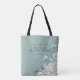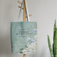Diese elegante Hochzeitstasche zeichnet sich durch einen verfeinerten salbeigrünen Hintergrund aus, der mit weichen botanischen Blumen und eleganter Typografie geschmückt ist und ein Look schafft, das sowohl klassisch als auch modern ist. Sie ist für anspruchsvolle Hochzeiten konzipiert und passt perfekt zu botanischen, Garten- und Luxus-Hochzeitsthemen.