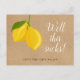 Diese rustikalen Zitronen ändern das Datum, an dem die Brautparty-Karte mit Ihren Aufschiebungsdetails personalisiert werden kann. Auf der Rückseite finden Sie zusätzliche Informationen, einschließlich Ihrer Website, mit Ihrer Rücksendeadresse und Platz für die Adresse Ihres Empfängers. Ein lustiger Weg, um Ihre Gäste mit Ihren neuen Plänen behalten. Entwickelt von Thisisnotme©