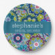 Brautparty Aquamarin und grüne Retro-Blume Pappteller