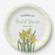 Entworfen auf Aquarellblumen-Illustration von Narzissen von Farida Greenfield. Schöne und zarte gelbe Daffodien flattern und tanzen im Frühjahr mit grünem Blattwerk um sie herum und einige Knospen bereit zu blühen. Perfektes Design für Ihre Brautparty-Feier. Bitte Karo meine Kollektion für passende Artikel.