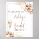 Blütendes Bohemisches Blumenglas Brautparty Willkommenspender Bohemisches inspiriertes Bridal Brunch Brautparty Begrüßungsschild mit einigen böhmischen Stil trockenen Blumenarrangements mit Pampas Gras, Champagner-Glas, rot gefärbte Blume, Pampas Gras und feinen Rahmen.
