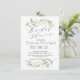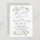 Schöne Brautdusche Einladung mit grünem und goldenem Blattwerk in Aquarell-Stil. Text "Brautparty" im kalligrafischen Stil geschrieben.