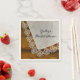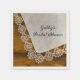 Personalisieren Sie den charmanten Country Lace und Barn Wood Brautparty Papier Napkins mit dem Namen der Braut zu sein. Diese rustikalen und eleganten Ranch Thema Polterabend Einwegservietten verfügen über ein malerisches Blumenfoto eines Vintagen Spitzen getrimmten weißen Leinen Taschentuch mit braunem Holzboden. Perfekte Inspiration für einen lässigen Bauernstil oder eine Stallfest-Party-Veranstaltung.