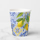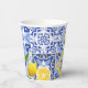 Diese Aquarelllemon fand ihr Hauptthema mediterrane Brautparty Papiertassen mit mediterranem Fliesenmuster in Blau und Weiß.Die staubige Blau-, Gelb-, Marineblau- und Weißfarbe ist eine perfekte Farbpalette für klassische und formale Brautparty Party Dekoration.