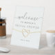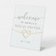 Elegantes, schlichtes weißes Brautparty Begrüßungsschild mit Imitaten goldenes Seilherz und modernem Kalligrafieschreiben.