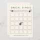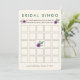 Das klassische Bingo-Brautparty auf einer hübschen Karte mit einer lila Aquarellpansy-Blume und grünen botanischen Akzenten. Koordiniert mit unserer Lila Pansy Kollektion von Brautduscheinladungen und Zubehör.