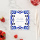 Blue Majolica Mexican Talavera Spanisch Französisch Mittelmeer Fliesen Brautparty gedruckte Servietten Vorlage. Moderne Aquarellfarben mit blauen Farbtönen mit modernem handgeschriebenem Schriftart personalisierte Tafelgeschirr bedruckte Servietten kundenspezifische Tischdekoration